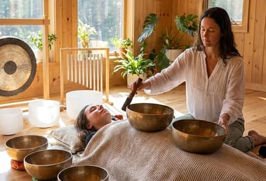 La sonoterapia es una terapia vibracional que utiliza el sonido de instrumentos como cuencos, campanas, tambores, gong y otros, para armonizar cuerpo, mente y campo energético.