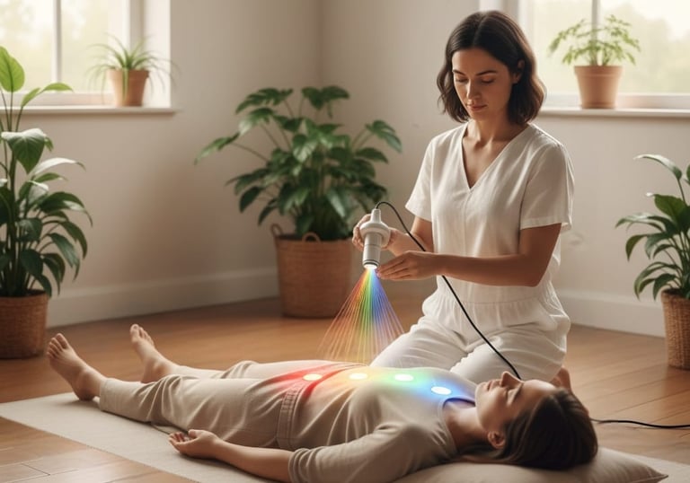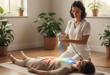 La cromoterapia utiliza el poder vibracional de los colores para armonizar cuerpo, mente y emociones, ya que cada color emite una frecuencia específica que influye en tus chakras y campos energéticos. Por ejemplo, el azul calma la ansiedad, el rojo activa la vitalidad, el rosa sana el corazón y el violeta eleva la espiritualidad. En sesión, se escanea que colores necesitas en cada órgano y chakra para el bienestar, logrando relajación profunda, equilibrio hormonal y mayor alegría vital. Perfecta para estrés emocional, fatiga o desarmonías estacionales, siempre de forma suave y personalizada.